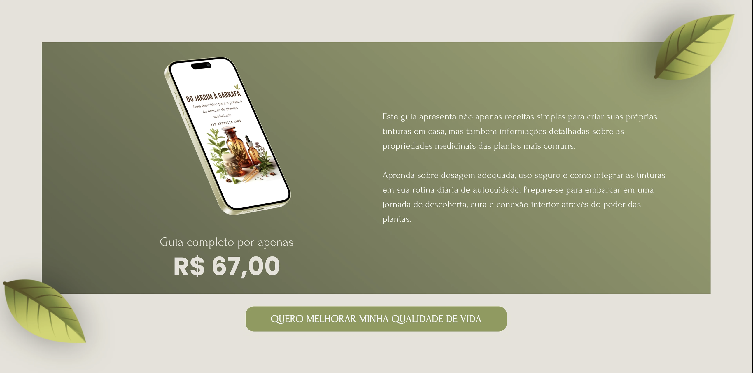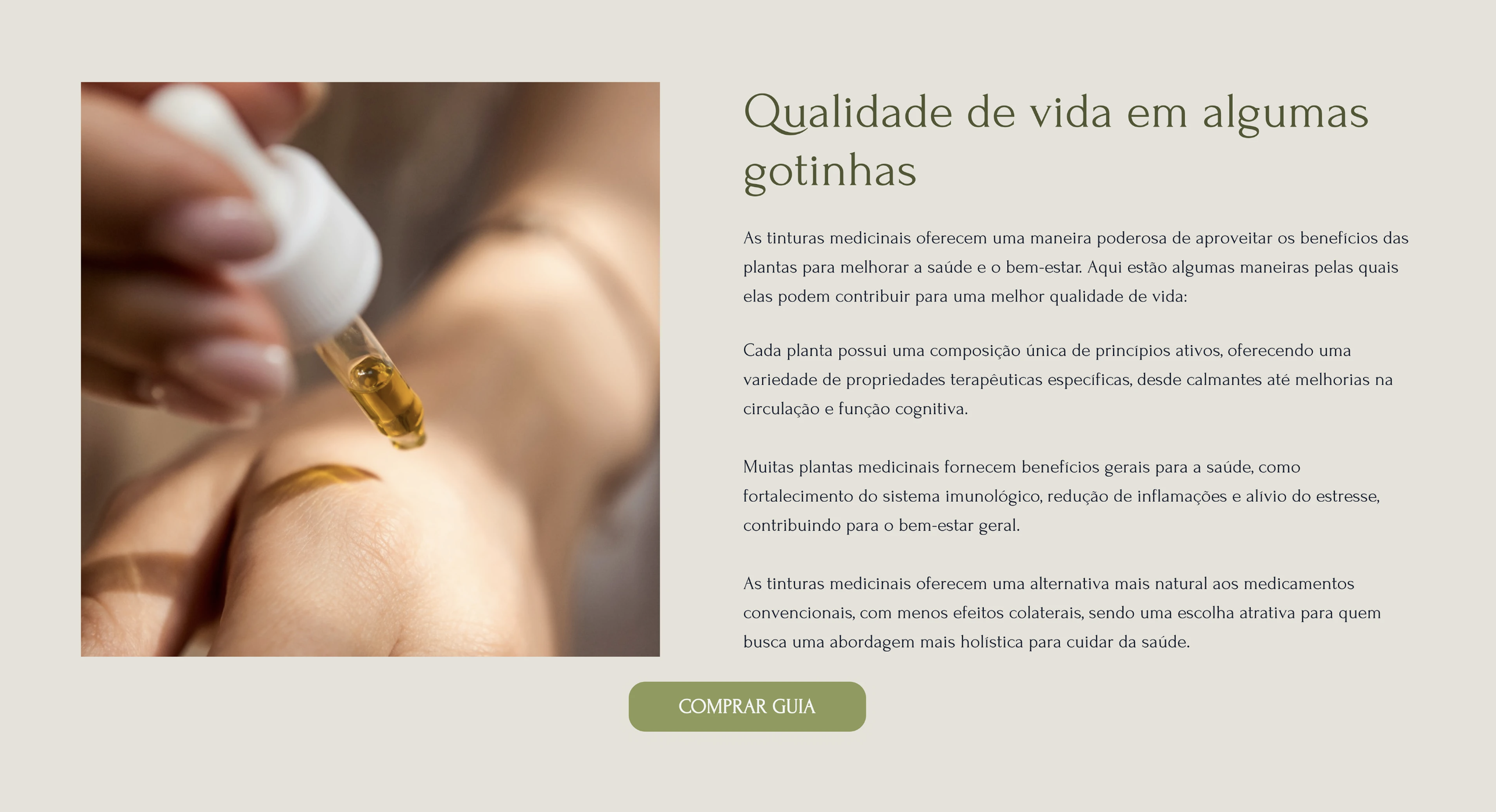 O resultado final foi uma plataforma de venda robusta que serviu como o principal pilar para o lançamento do Guia de Tinturas Medicinais. O design conseguiu equilibrar a leveza do tema "natural" com o rigor técnico necessário para um produto de saúde.