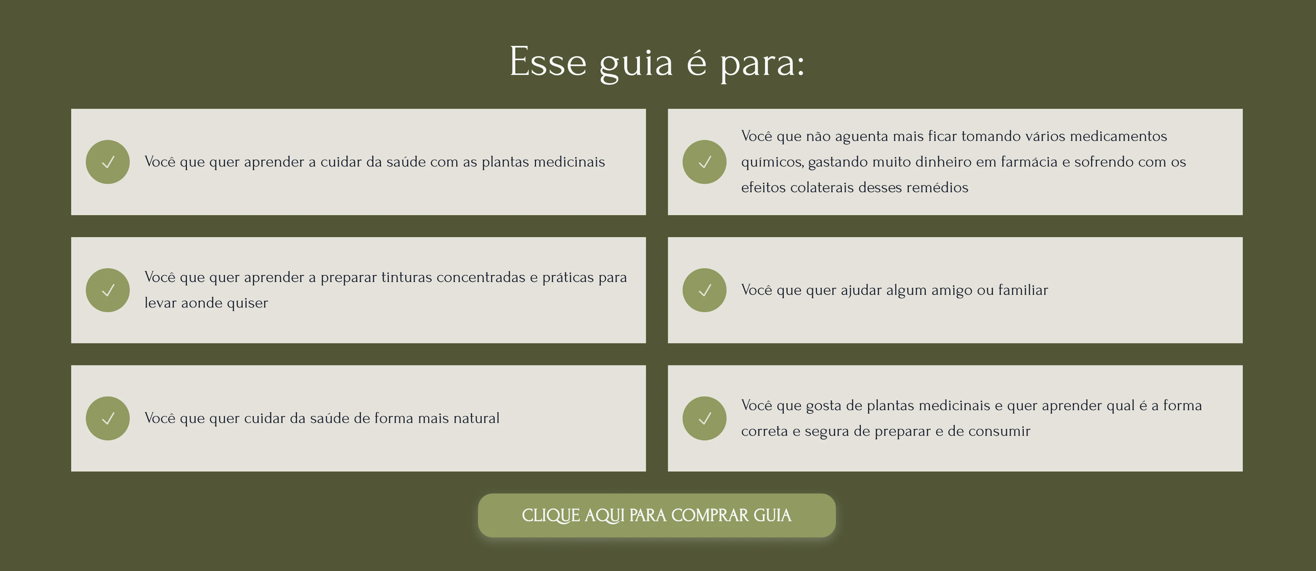 Implementamos seções de "Este guia é para você", utilizando checklists de fácil leitura que geram identificação imediata com as dores do público (ex: evitar efeitos colaterais de remédios sintéticos).