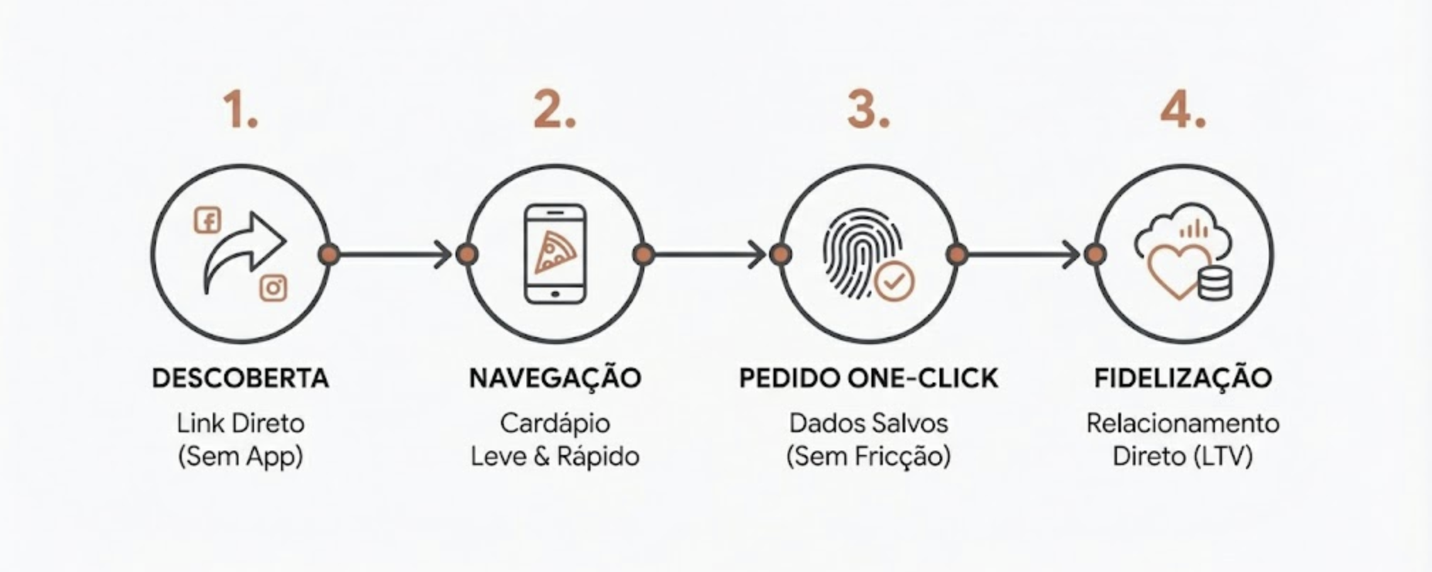 O modelo proposto reduzia dependência de agregadores, permitindo que restaurantes recuperassem margem e construíssem relacionamento direto com seus clientes.